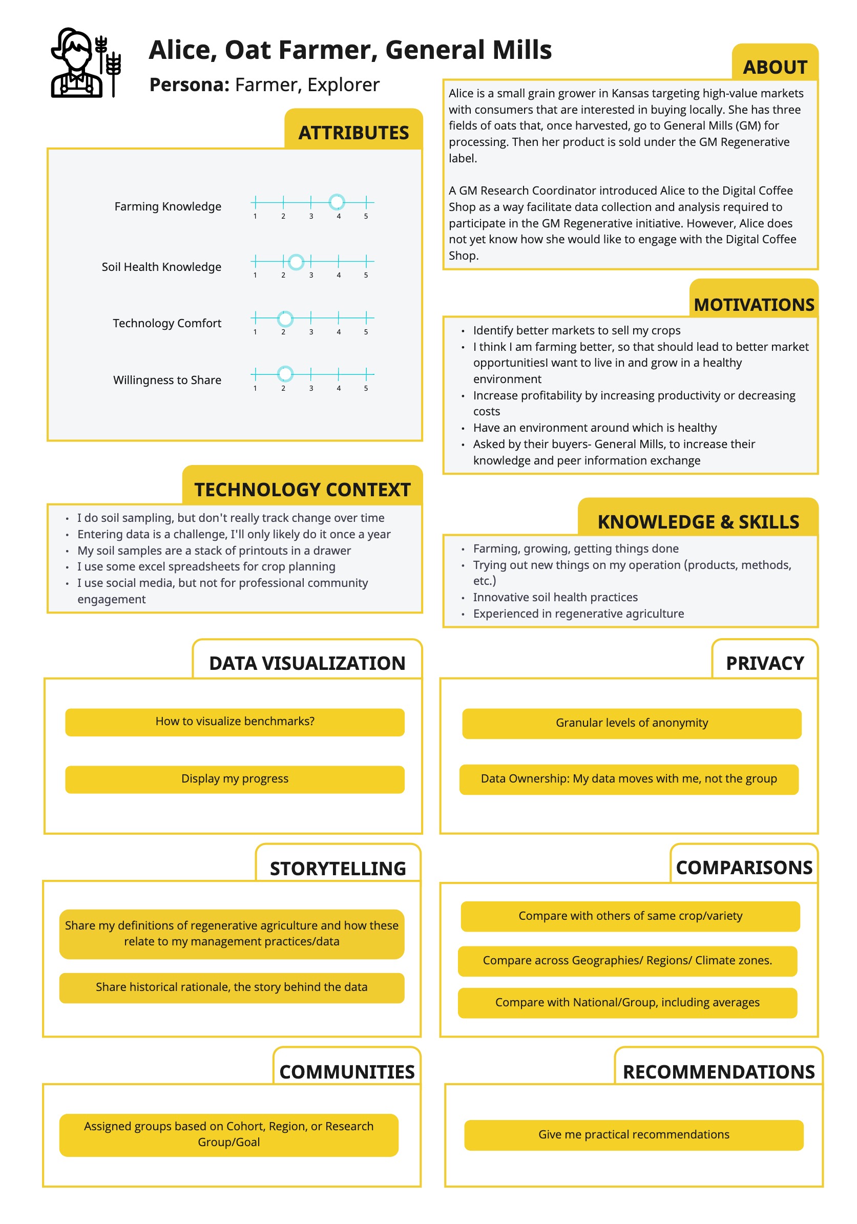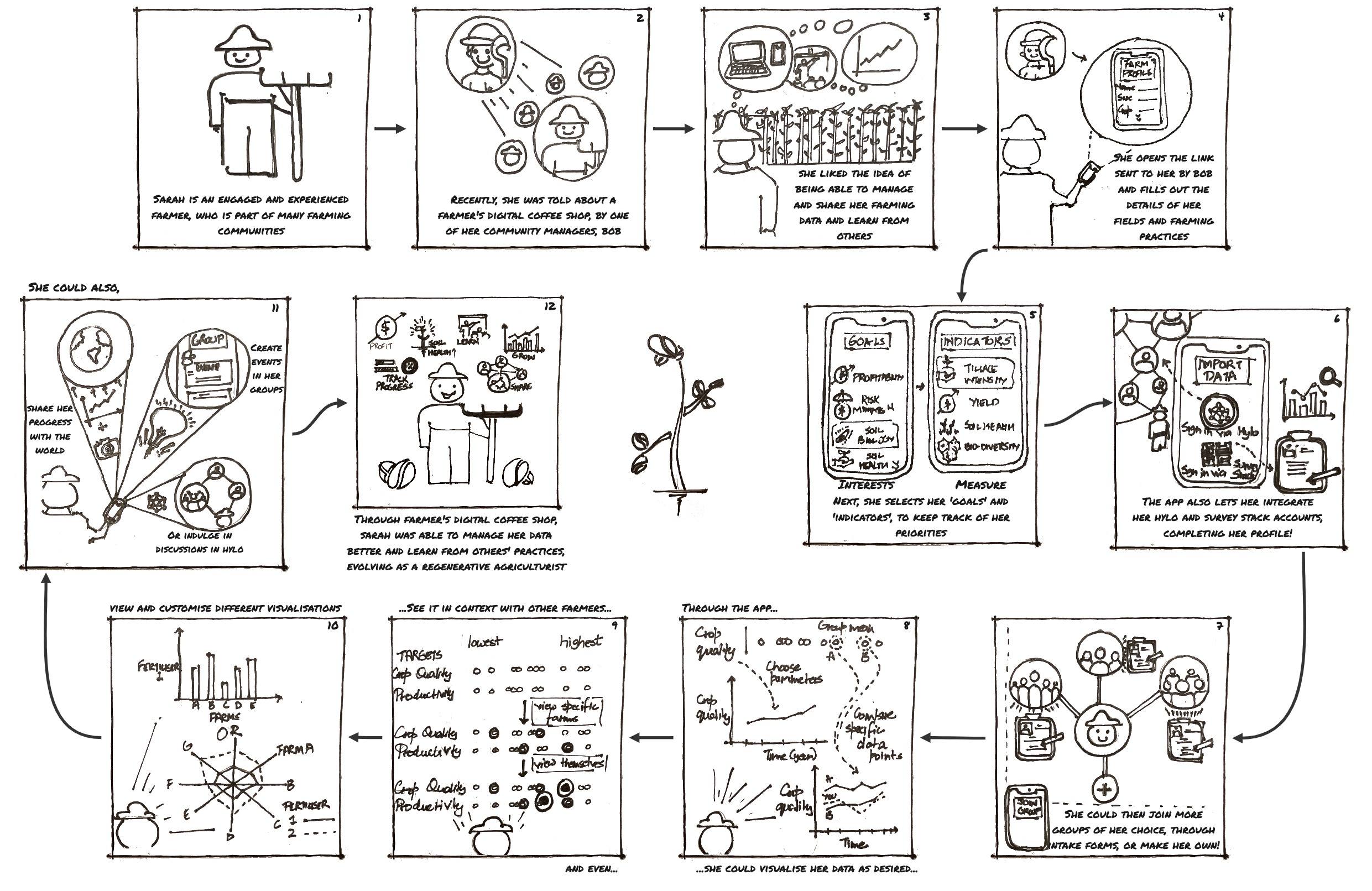 An initiative by Our Sci, a software startup that build community research tools, and General Mills, a U.S. based food company interested in supporting regenerative agriculture, Farmer's Digital Coffeeshop (FDCS) is a digital tool to help farmer's learn about Regenerative Agricultural Practices, from each other, and also from soil health researchers and other experts. We at axiLab, conducted the User Research for the tool and also generated some concepts, to pass on to the User Interaction team. As of now, the tool is in development, which is a happy ending for a research initiative with a noble cause.